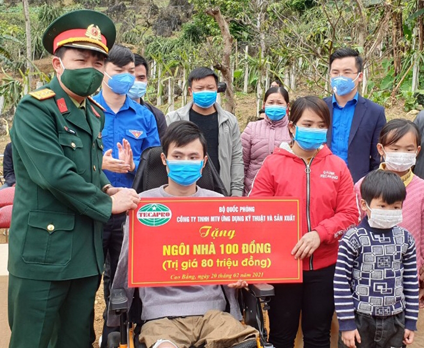 | Lãnh đạo Ban Thanh niên Quân đội trao kinh phí hỗ trợ xây dựng “Ngôi nhà 100 đồng” tặng thanh niên có hoàn cảnh khó khăn tại xã Vũ Minh, huyện Nguyên Bình, tỉnh Cao Bằng (tháng 2-2021). |