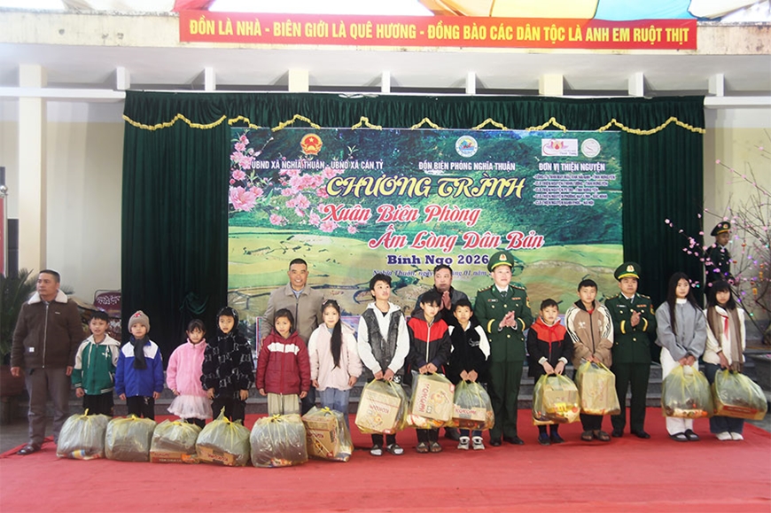 Chương trình kết nối các đơn vị tài trợ trao tặng 280 suất quà Tết cho đồng bào vùng biên 2 xã Nghĩa Thuận và Cán Tỷ: 82 suất quà cho các hộ gia đình tham gia bảo vệ chủ quyền lãnh thổ, an ninh biên giới; 14 suất quà cho các cháu trong Chương trình “Nâng bước em tới trường”; 2 suất quà cho “Con nuôi đồn Biên phòng”; 182 suất quà cho gia đình chính sách, hộ nghèo.