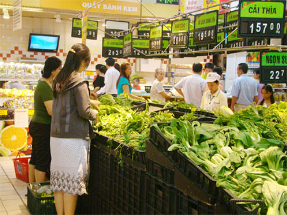 Giá cả hàng hóa ở các chợ tăng, khó xác định nên nhiều người dân đã đổ xô vào siêu thị để mua hàng, vì giá cả được niêm yết công khai và có chương trình bình ổn giá. Vì vậy, hệ thống các siêu thị Saigon Co.op, BigC… đã rơi vào tình trạng quá tải. Chiều tối 10-11, chúng tôi có mặt tại Siêu thị Big C đường Tô Hiến Thành, nơi đây luôn đông nghịt khách vào mua hàng. Đây là siêu thị có mức giá bán lẻ khá thấp và có nhiều hình thức khuyến mãi, tích cực tham gia chương trình bình ổn giá của UBND Thành phố Hồ Chí Minh. Tuy nhiên, một cán bộ của siêu thị cho biết, siêu thị luôn tính toán để bảo đảm mức giá rẻ nhất nhưng vì một số mặt hàng bị khan hiếm nguồn cung nên siêu thị phải giới hạn số lượng mua. Có mặt tại quầy thực phẩm của siêu thị này, chúng tôi thấy ở mặt hàng đường cát được siêu thị dán bảng thông báo hết hàng hoặc quy định mỗi người chỉ được mua 1kg đường trong ngày. Bảng thông báo vậy nhưng thực tế trên kệ không hề có một bao đường nào do người mua quá nhiều vì giá chênh lệch so với giá ngoài chợ khoảng 6000đ/kg.