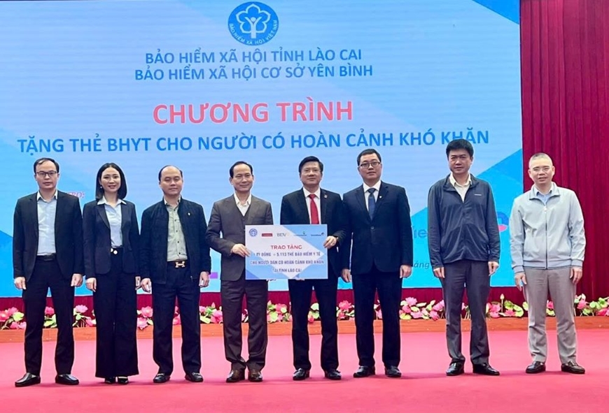Tiếp đó, ngày 11-12, tại xã Yên Bình, tỉnh Lào Cai, ông Tạ Quang Khả, Phó giám đốc Agribank chi nhánh Yên Bái đã tham dự chương trình và trực tiếp trao thẻ BHYT tặng những người có hoàn cảnh khó khăn tại địa phương. Ngoài hoạt động trao tặng thẻ BHYT, Agribank chi nhánh Yên Bái luôn tích cực phối hợp cùng BHXH tỉnh triển khai các hoạt động thể hiện trách nhiệm xã hội của ngân hàng tại địa phương, chăm lo đời sống nhân dân, đóng góp vào nỗ lực “không để ai bị bỏ lại phía sau”.