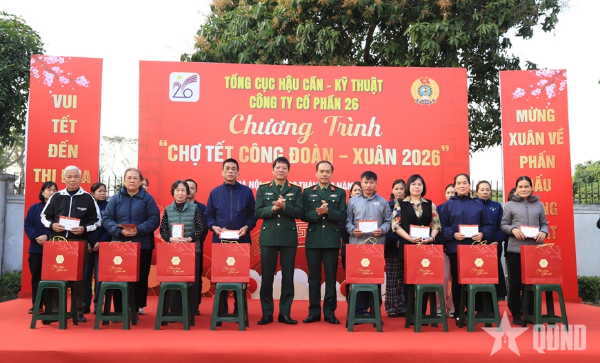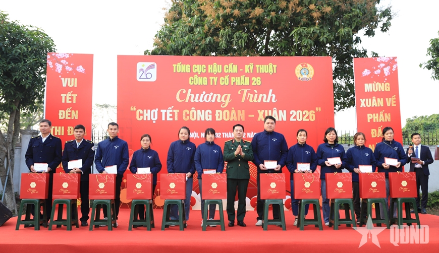 Trên tinh thần đó, chương trình “Chợ Tết công đoàn - Xuân 2026” là sự quan tâm động viên, chia sẻ kịp thời của thủ trưởng Tổng cục Hậu cần - Kỹ thuật, Ban Công đoàn Quốc phòng, lãnh đạo, chỉ huy Công ty Cổ phần 26 và tổ chức công đoàn các cấp đối với các gia đình chính sách, đoàn viên công đoàn và người lao động nhân dịp Tết Nguyên đán cổ truyền của dân tộc.