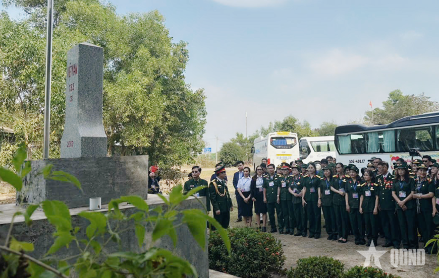 | Các đại biểu tham quan cột mốc biên giới. |