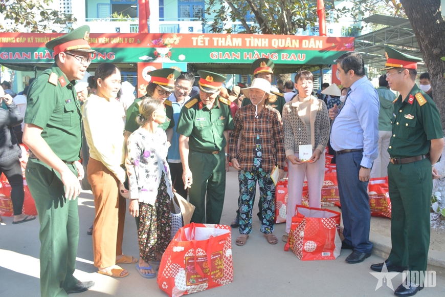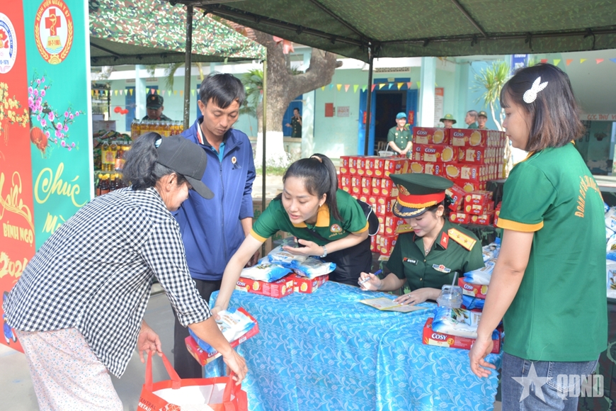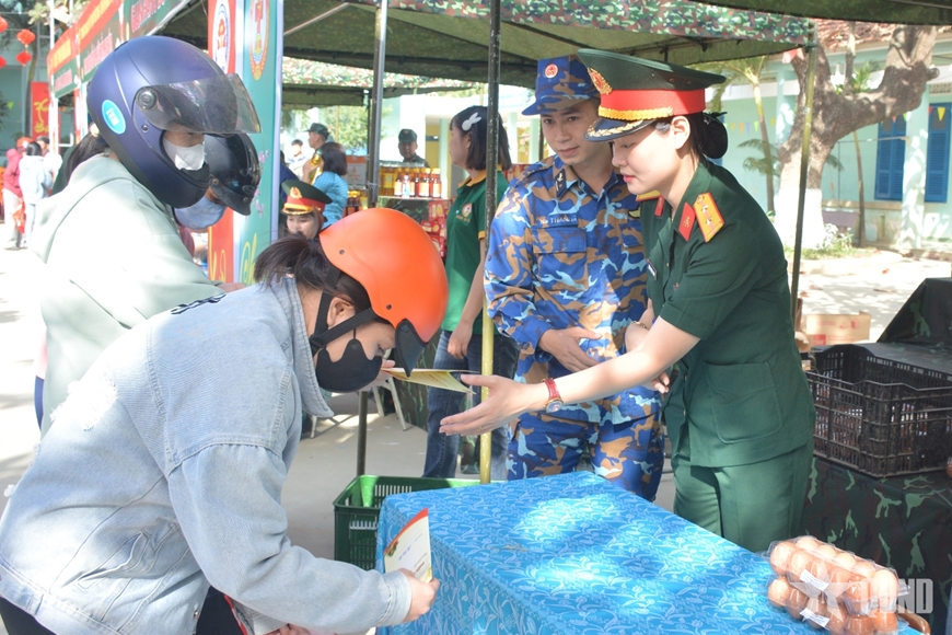 Đại tá Nguyễn Văn Tuấn, Phó chủ nhiệm Chính trị Tổng cục Hậu cần - Kỹ thuật cho biết: “Với tinh thần không để ai bị bỏ lại phía sau, toàn bộ kinh phí tổ chức phiên chợ được đóng góp từ cán bộ, chiến sĩ trong Tổng cục, đặc biệt là cán bộ, chiến sĩ của Trường Trung cấp Kỹ thuật miền Trung và Bệnh viện Quân y 87, kết hợp với các sản phẩm tăng gia sản xuất của đơn vị. Qua đó, chúng tôi mong muốn góp phần để bà con có một cái Tết xum vầy, ấm áp hơn”.
