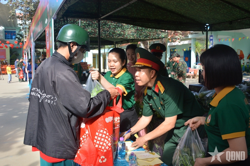 Tại phiên chợ, Ban tổ chức đã trao 550 suất quà, mỗi suất trị giá 500.000 đồng, gồm các nhu yếu phẩm thiết yếu như gạo, bánh chưng, bánh kẹo, dầu ăn, nước mắm… cùng nhiều sản phẩm tươi ngon như rau, củ, quả, trứng gà do chính tay cán bộ, chiến sĩ tăng gia sản xuất. Những món quà giản dị nhưng thấm đẫm tình cảm, thể hiện trách nhiệm và nghĩa tình của Bộ đội Cụ Hồ đối với nhân dân.