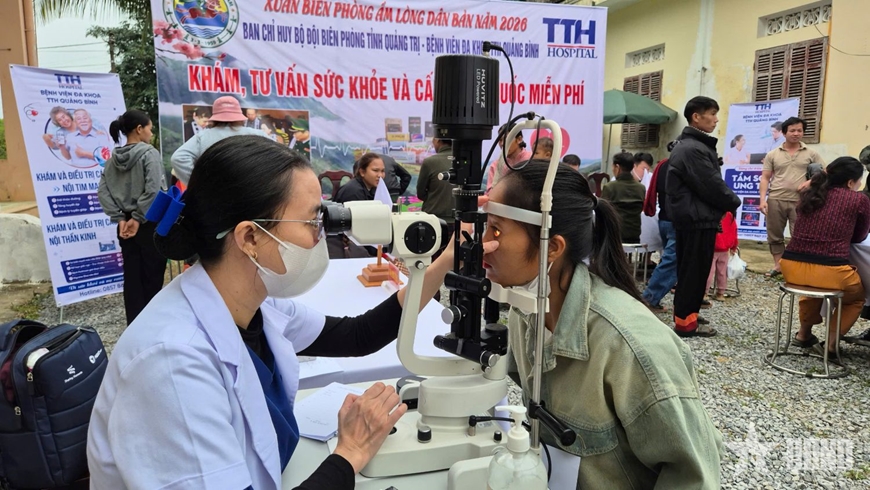 | Quân y Bộ đội Biên phòng tỉnh Quảng Trị phối hợp cùng Bệnh viện đa khoa TTH Quảng Bình khám bệnh, cấp thuốc miễn phí giúp đồng bào Rục. |