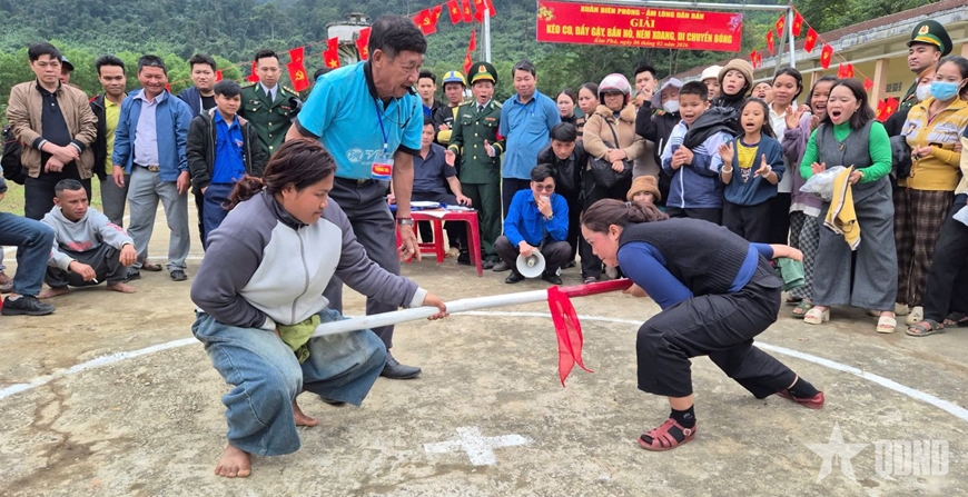 Niềm vui được nhân lên khi Ban tổ chức chương trình tổ chức lễ khánh thành, bàn giao công trình nước sạch; khởi công xây dựng, sửa chữa nhà ở cho đồng bào Rục các bản Ón, Yên Hợp, Mò O Ồ Ồ. Các cơ quan, đơn vị trực thuộc Ban chỉ huy BĐBP tỉnh Quảng Trị phối hợp triển khai nhiều hoạt động, như: Thăm hỏi, tặng quà gia đình chính sách; khám bệnh, cấp phát thuốc miễn phí, tuyên truyền khoa học - công nghệ, chuyển đổi số, hỗ trợ mô hình sinh kế cho hội viên phụ nữ xã Kim Phú; tổ chức các trò chơi dân gian như ném xoang, bắn nỏ, đẩy gậy, kéo co; lễ hội bánh chưng xanh… thu hút sự tham gia của đông đảo cán bộ, chiến sĩ và nhân dân.