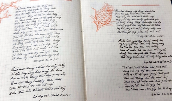 Như được cởi lòng, anh Đức mở ngăn kéo tủ mang ra cuốn nhật ký đã cũ, giới thiệu: “Sau khi đất nước thống nhất, cha tôi chuyển ngành về công tác tại Ty Lương thực Hà Sơn Bình năm 1978; ông tập hợp và chép lại tất cả những bài thơ từng làm trong thời gian ở quân ngũ”. Cuốn nhật ký với gần 100 bài thơ (không có đầu đề) và nhiều mốc sự kiện quan trọng trong cuộc đời ông Hoàng Minh Ngọc, cha của Trung tá Hoàng Việt Đức. Ông Hoàng Minh Ngọc (1945-2009) nhập ngũ tháng 8-1968, ở Tiểu đoàn 493, Trung đoàn 4, Sư đoàn 320B. Từ năm 1968 đến tháng 4-1975, ông tham gia 28 trận đánh trên các cương vị là chỉ huy cấp tiểu đội, trung đội và đại đội.