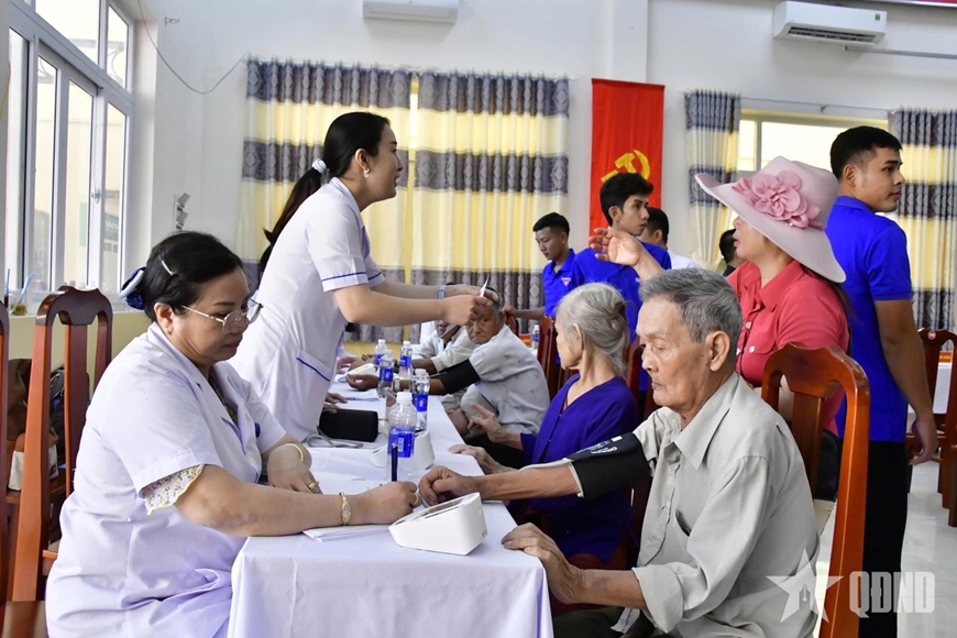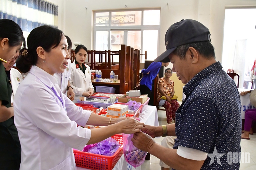 Người dân được khám bệnh, tư vấn sức khỏe và cấp phát thuốc miễn phí trong hành trình về nguồn của Bệnh viện Quân y 121 tại xã Đông Hưng (tỉnh An Giang).
