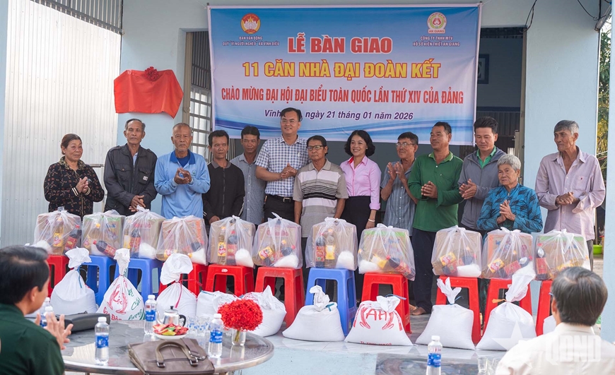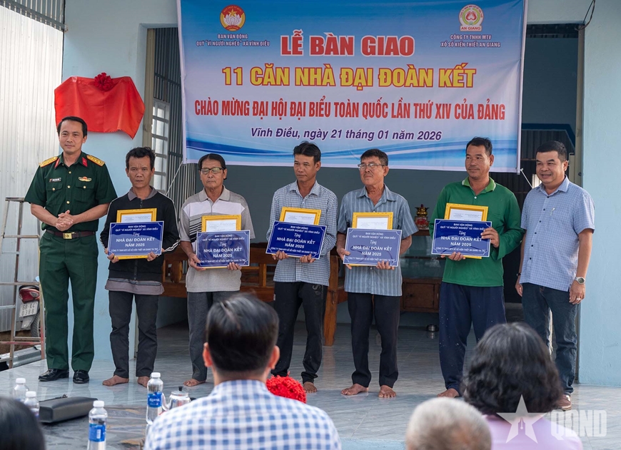 | Bàn giao 11 căn nhà Đại đoàn kết tại xã Vĩnh Điều. |