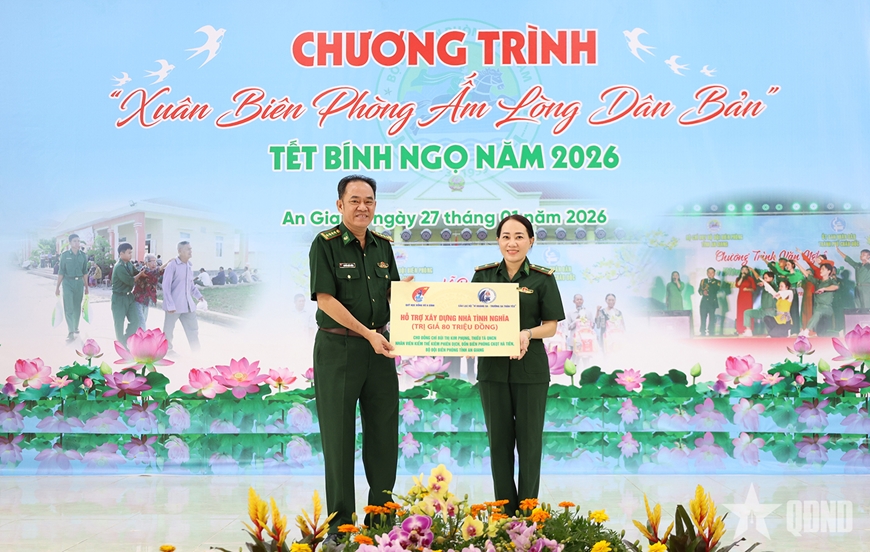 Ngày 26-1, Ban Chỉ huy Bộ đội Biên phòng tỉnh An Giang phối hợp với cấp ủy, chính quyền địa phương xã Hòa Điền (tỉnh An Giang) tổ chức Lễ bàn giao nhà “Đại đoàn kết” tặng 2 hộ dân có hoàn cảnh khó khăn trên địa bàn ấp Núi Trầu, trong khuôn khổ hoạt động “Tết quân-dân” năm 2026.