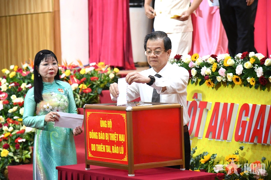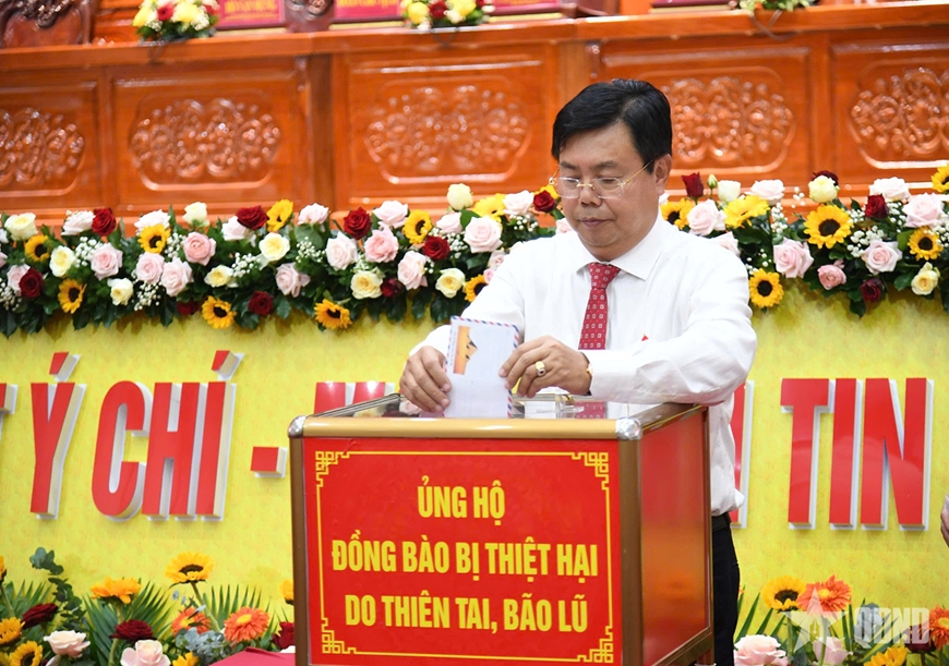 Bí thư Tỉnh ủy An Giang Nguyễn Tiến Hải đóng góp ủng hộ đồng bào.