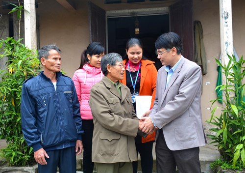 Cán bộ ngành LĐ-TB-XH tỉnh Thanh Hóa đến thăm, động viên gia đình NCC có khó khăn về nhà ở tại xã Đồng Tiến, huyện Đông Sơn đang sống trong ngôi nhà xuống cấp, thuộc diện chờ hỗ trợ để xây nhà mới. Ảnh: THẢO NGUYÊN
