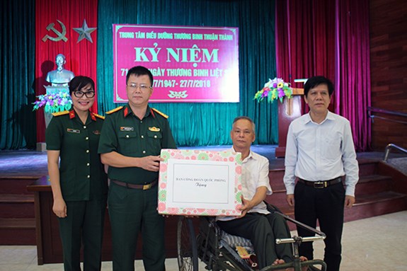 Ngày 24-7, Ban Công đoàn Quốc phòng tổ chức thăm, tặng quà Trung tâm Điều dưỡng thương binh Thuận Thành (xã Ninh Xá, huyện Thuận Thành, tỉnh Bắc Ninh) và Trung tâm Điều dưỡng người có công tỉnh Phú Thọ (xã Hà Thạch, thị xã Phú Thọ, tỉnh Phú Thọ), nhân kỷ niệm 71 năm Ngày Thương binh-Liệt sĩ (27-7-1947/ 27-7-2018)
