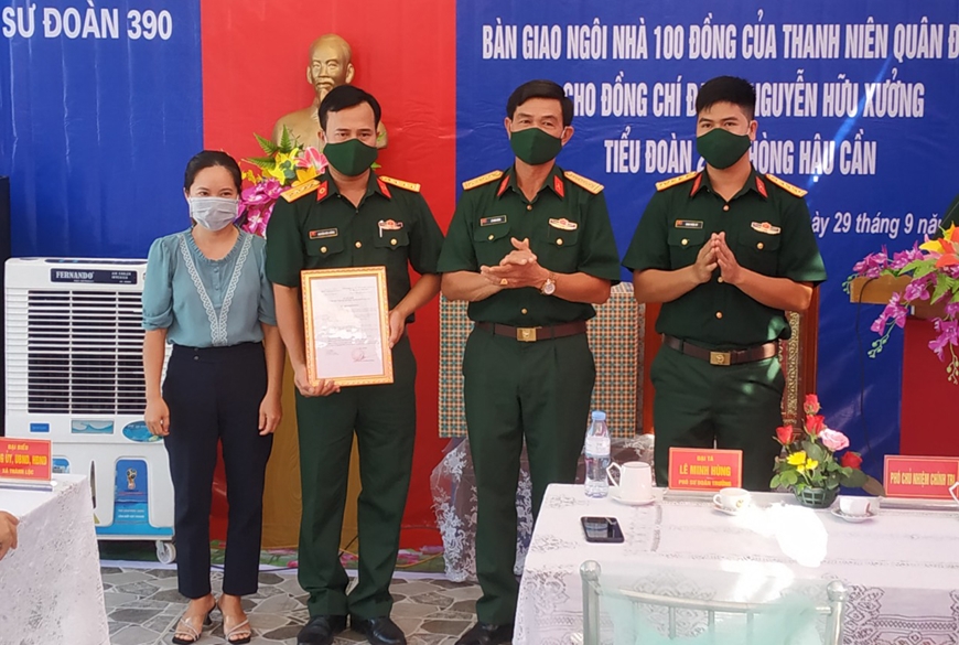 Ngày 29-9, Sư đoàn 390, Quân đoàn 1 tổ chức bàn giao Ngôi nhà 100 đồng tặng Đại úy QNCN Nguyễn Hữu Xưởng thuộc Tiểu đoàn 24, phòng Hậu cần, Sư đoàn 390.