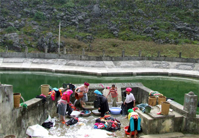 | Người dân xã Sủng Là, huyện Đồng Văn (Hà Giang) dùng nước sạch từ công trình hồ treo do Chính phủ đầu tư xây dựng. Ảnh: Trường Giang |