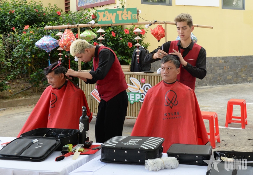 | Công nhân tham gia nhiều hoạt động chăm lo thiết thực như: Cắt tóc, thăm khám sức khỏe. |