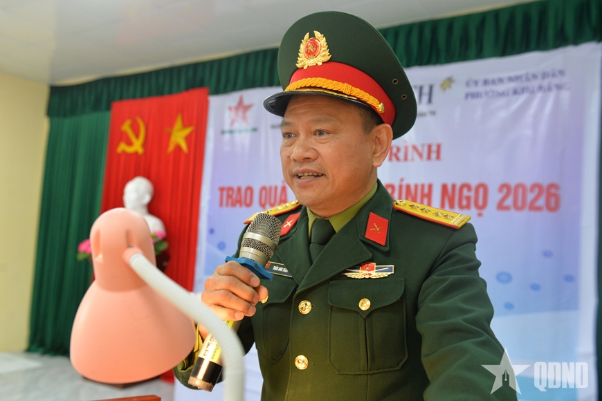 | Đại tá Trần Anh Tuấn, Phó tổng biên tập Báo Quân đội nhân dân phát biểu tại buổi trao quà Tết. |