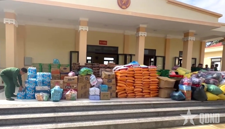 Hàng chục tấn hàng được Đồn Biên phòng Cửa khẩu cảng Sa Kỳ tiếp nhận và vận chuyển đến bà con vùng lũ Đắk Lắk.
