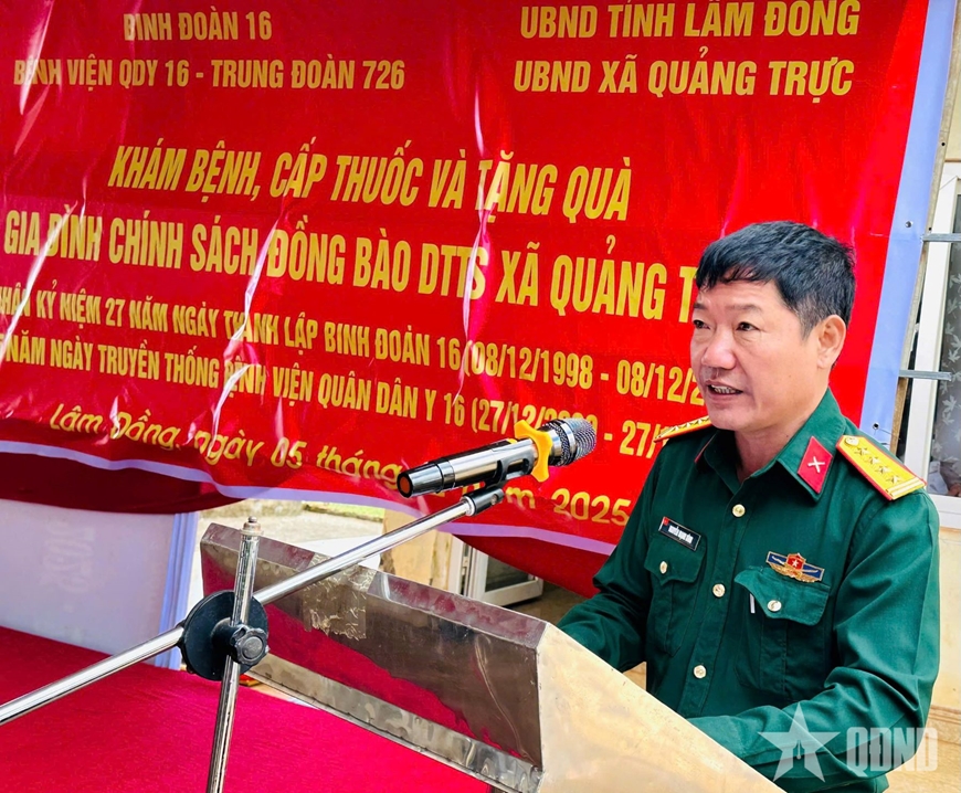Tại chương trình, Đại tá Nguyễn Mạnh Bình, Bí thư Đảng ủy, Chính ủy Bệnh viện Quân dân y 16 cho biết, đợt khám bệnh, tư vấn sức khỏe lần này tiếp tục khẳng định phương châm của Bệnh viện Quân dân y 16: Đưa dịch vụ y tế của Quân đội đến gần hơn với nhân dân, bảo đảm không ai bị bỏ lại phía sau, dù ở những địa bàn xa nhất, khó khăn nhất. Qua đó, thắt chặt mối quan hệ gắn bó máu thịt quân dân, thể hiện tình cảm, tính nhân văn, trách nhiệm của Bệnh viện Quân dân y 16 đối với gia đình chính sách, đồng bào nghèo, dân tộc thiểu số vùng sâu, vùng xa, biên giới.