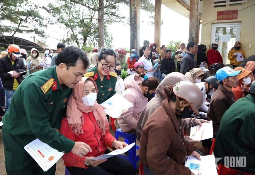 Bác sĩ Bệnh viện Quân dân y 16 và Bệnh xá Quân dân y Trung đoàn 726 khám bệnh cho các đối tượng chính sách, có hoàn cảnh khó khăn.