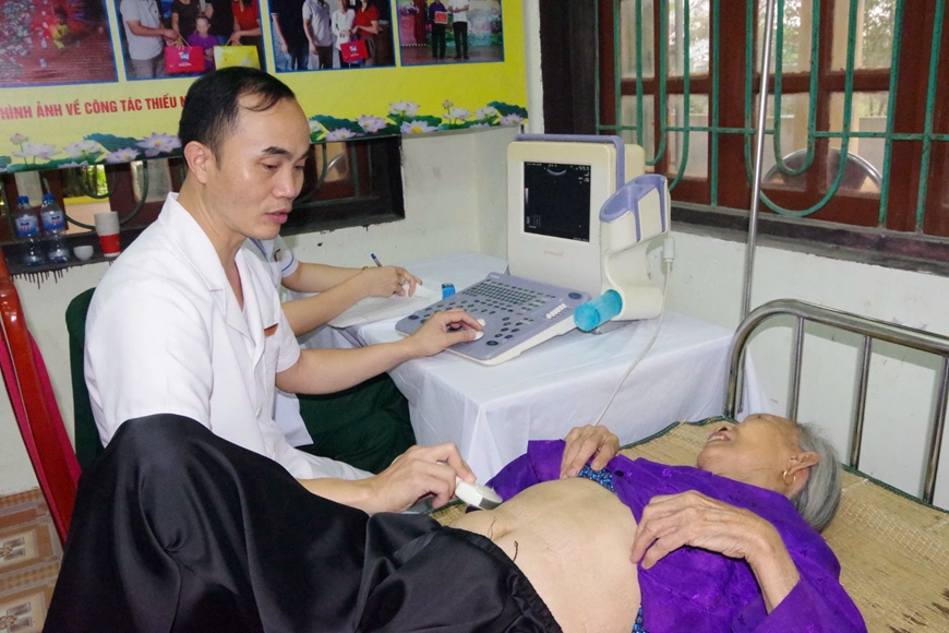 | Lãnh đạo Bệnh viện Quân y 109 (Cục Hậu cần-Kỹ thuật Quân khu 2) theo dõi, chỉ đạo các thầy thuốc khám bệnh cho nhân dân xã Hải Lựu, tỉnh Phú Thọ. |