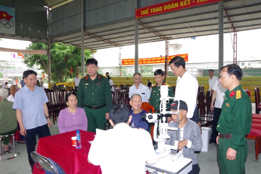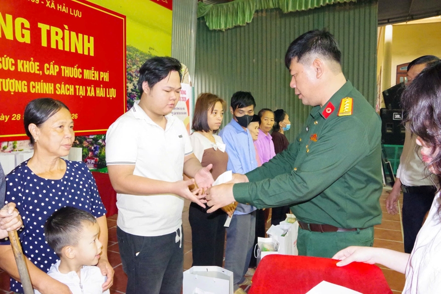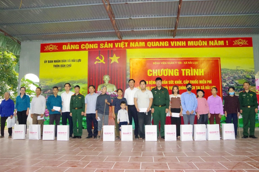 Ngày 28-3, Bệnh viện Quân y 109 (Cục Hậu cần - Kỹ thuật Quân khu 2) tổ chức chương trình khám bệnh, tư vấn sức khỏe, cấp thuốc miễn phí, tặng quà cho các đối tượng chính sách tại xã Hải Lựu (tỉnh Phú Thọ).
