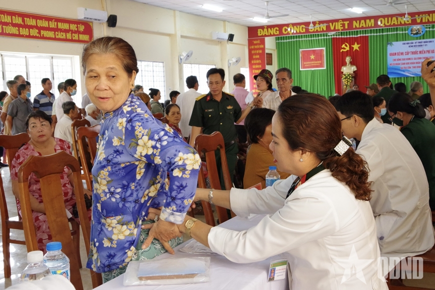 Chia sẻ về sự tận tình của đội ngũ y, bác sĩ, bà Huỳnh Thị Kim Loan, người dân ấp Trà Ngoa (tỉnh Vĩnh Long) phấn khởi: “Tôi bị đau đầu gối lâu nay, nay nghe tin các bác sĩ quân y Bệnh viện 121 về tận xã tổ chức chương trình khám bệnh. Đến đây được các y, bác sĩ tận tình tư vấn cách điều trị và cấp thuốc miễn phí, tôi rất mừng. Mong có thêm nhiều chương trình như thế này để bà con có điều kiện chăm sóc sức khỏe tốt hơn".