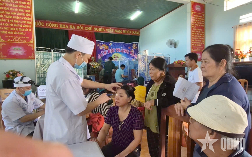 Đội ngũ y, bác sĩ Bệnh viện Quân y 211 khám bệnh cho người dân. |