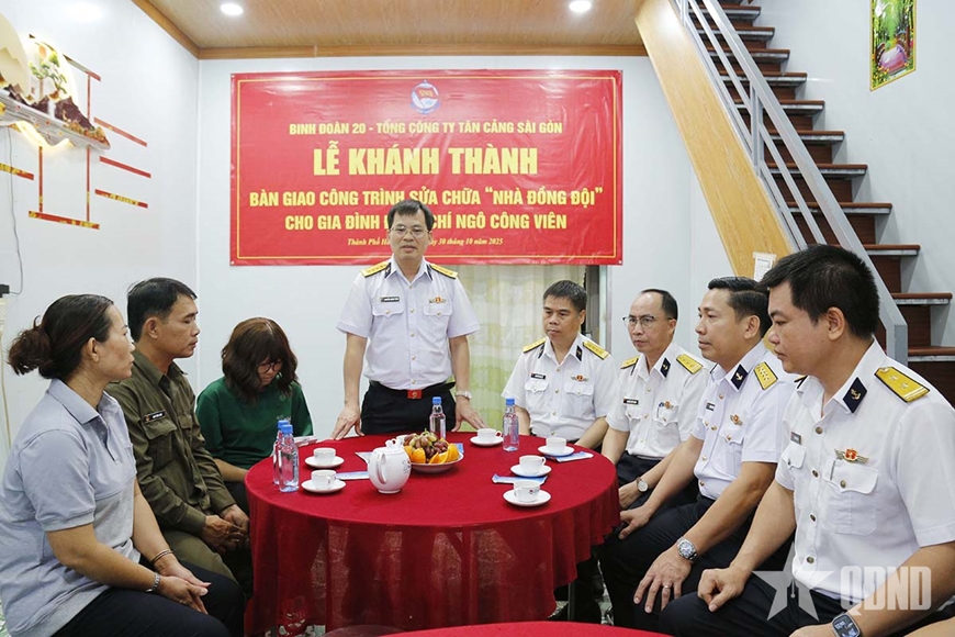 Sáng 30-10, tại TP Hồ Chí Minh, Binh đoàn 20 - Tổng công ty Tân cảng Sài Gòn tổ chức khánh thành, bàn giao công trình sửa chữa nhà đồng đội cho gia đình đồng chí Ngô Công Viên. Đại tá Nguyễn Năng Toàn, Bí thư Đảng ủy, Phó tư lệnh Binh đoàn dự bàn giao.