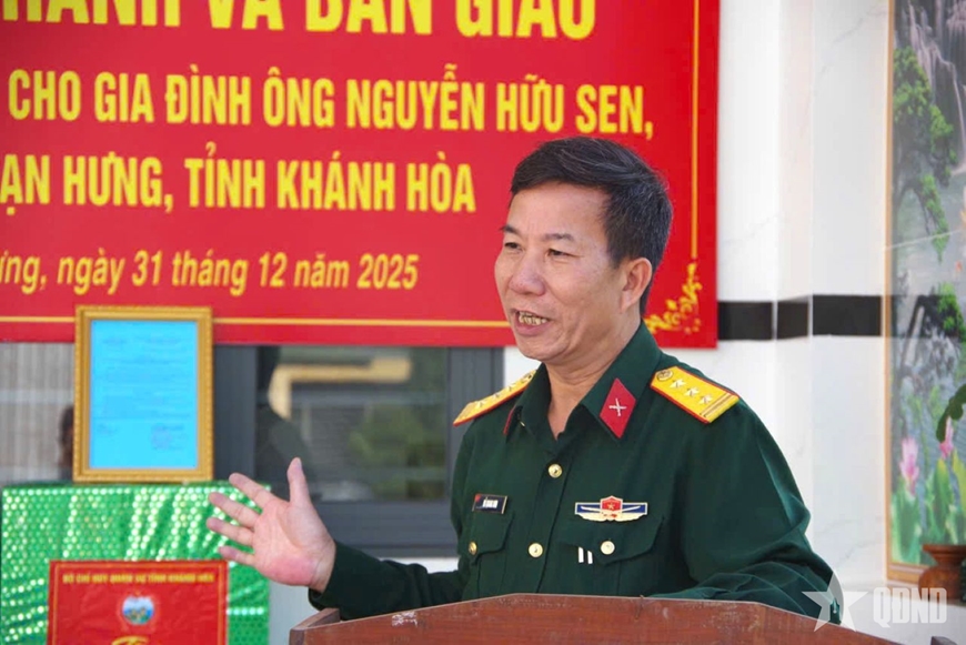 Phát biểu kết luận, Thượng tá Đỗ Quang Hơn, Phó chủ nhiệm Chính trị Bộ CHQS tỉnh Khánh Hòa nhấn mạnh: "Việc xây dựng và bàn giao nhà đại đoàn kết thể hiện sự quan tâm sâu sắc của Đảng ủy Bộ tư lệnh Quân khu 5, Đảng ủy Bộ CHQS tỉnh Khánh Hòa và các cấp, các ngành địa phương đối với các gia đình chính sách còn khó khăn về nhà ở; đồng thời góp phần thắt chặt hơn nữa mối quan hệ đoàn kết quân dân, tô thắm hình ảnh Bộ đội Cụ Hồ trong thời kỳ mới.