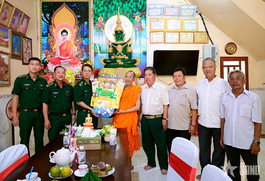 Tại các nơi đến thăm, lãnh đạo Bộ đội Biên phòng tỉnh cùng chỉ huy các đồn Biên phòng đứng chân trên địa bàn đã ân cần thăm hỏi sức khỏe, đời sống các vị sư sãi, người có uy tín và bà con đồng bào Khmer; đồng thời gửi lời chúc mừng năm mới Chol Chnam Thmay an lành, hạnh phúc, mùa màng thắng lợi.
