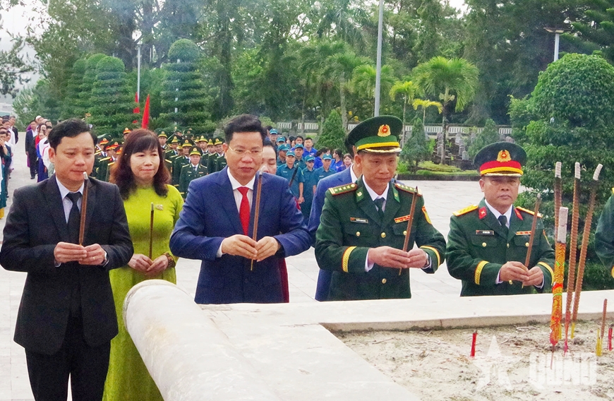 Đại tá Nguyễn Thành Đính, Chỉ huy trưởng Ban chỉ huy Bộ đội Biên phòng tỉnh Lâm Đồng cùng các đồng chí lãnh đạo tỉnh Lâm Đồng viếng các Anh hùng liệt sĩ tại Nghĩa trang Liệt sĩ Đắk Nông.