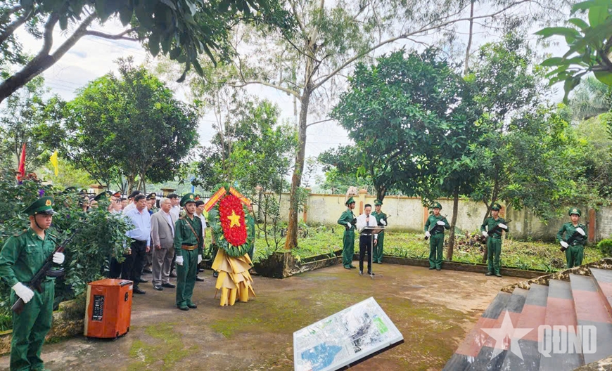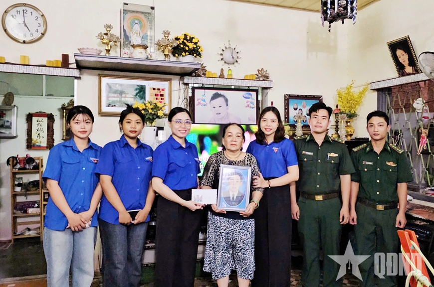 | Đồn Biên phòng Phước Lộc cùng đoàn viên, thanh niên địa phương phục dựng và trao tặng di ảnh cho gia đình thân nhân liệt sĩ. |