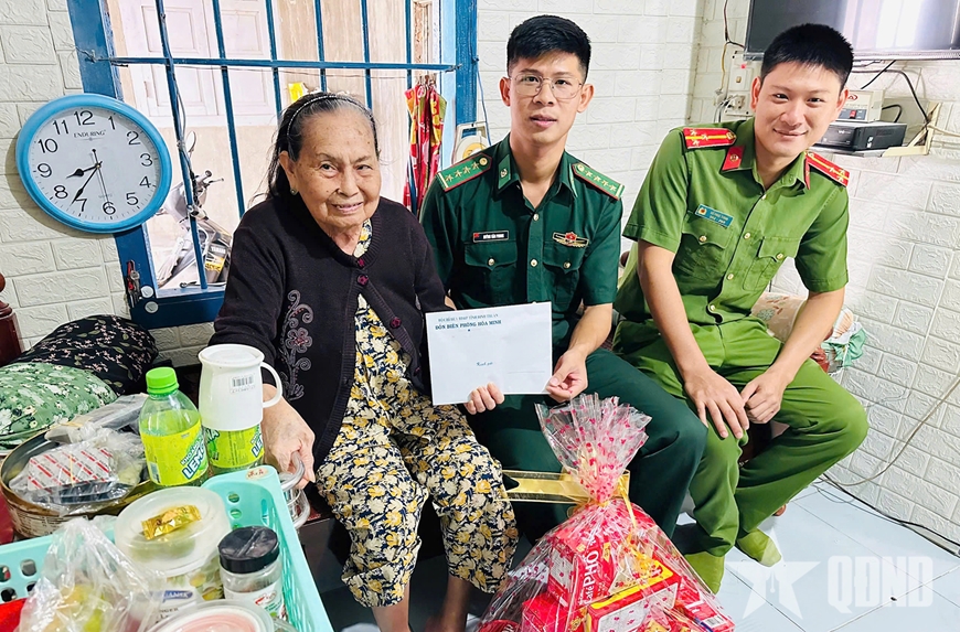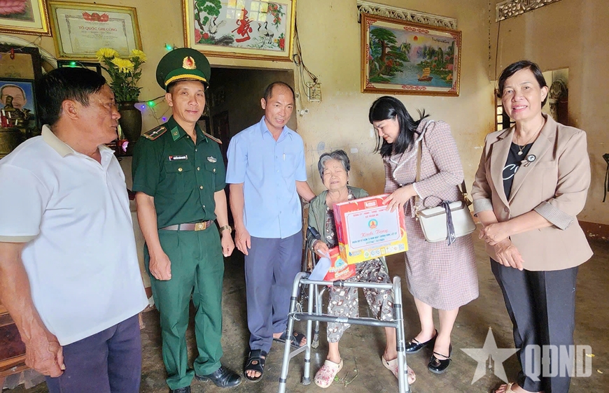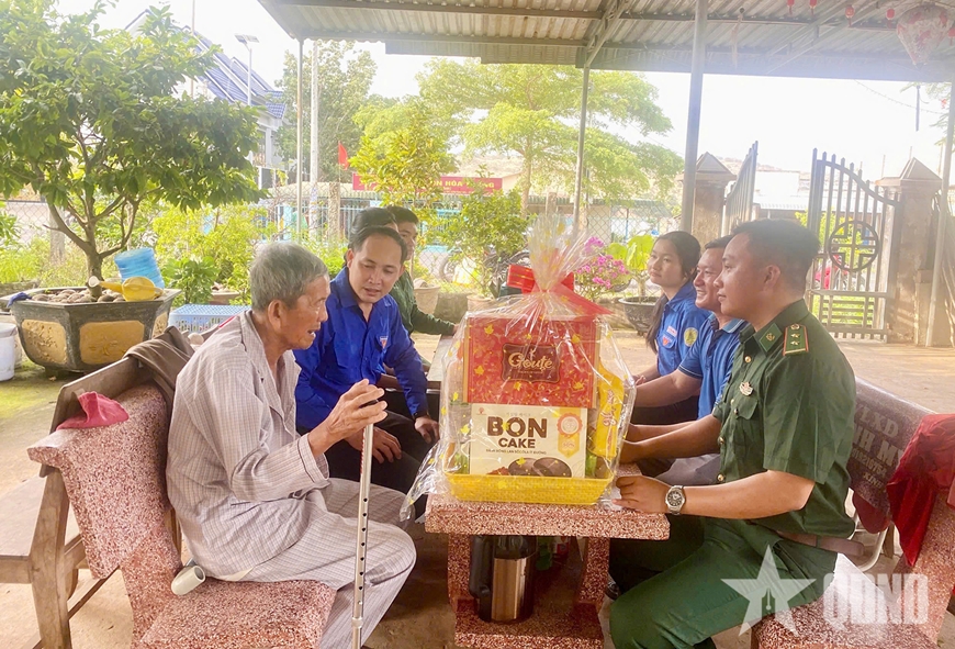 | Đồn Biên phòng Hòa Thắng phối hợp thăm hỏi, tặng quà gia đình có công với cách mạng. |
