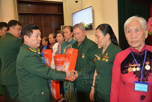 Lãnh đạo Cục Chính sách, Tổng cục Chính trị tặng quà cho người có công tỉnh Kiên Giang.