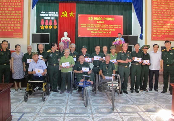 Tại buổi lễ, thừa ủy quyền của Bộ Quốc phòng, Tổng cục Chính trị, Thiếu tướng Trần Quốc Dũng, Cục trưởng Cục Chính sách đã trao một số trang thiết bị dùng chung, thiết bị y tế tặng Trung tâm điều dưỡng thương binh Nghệ An với tổng trị giá 1,053 tỷ đồng; trao một số trang thiết bị dùng chung, thiết bị y tế tặng Trung tâm điều dưỡng người có công tỉnh Nghệ An với tổng trị giá 1,1 tỷ đồng. Dịp này, Bộ Quốc phòng cũng đã trao 70 suất quà tặng các thương binh, bệnh binh. Các trang thiết bị và quà tặng này được trích từ quỹ “Đền ơn đáp nghĩa” của Bộ Quốc phòng.