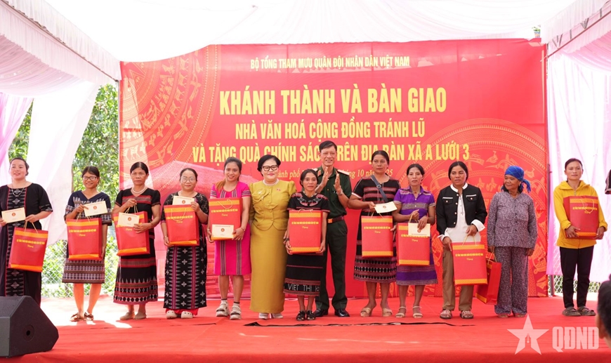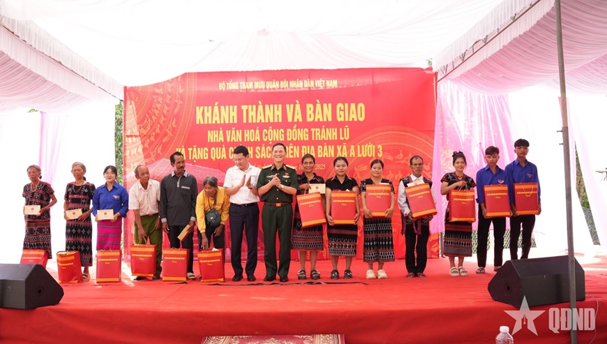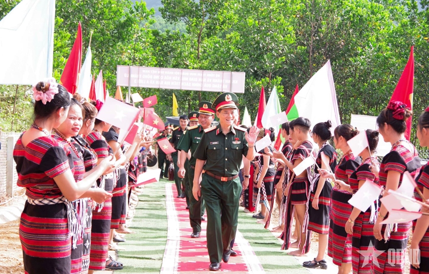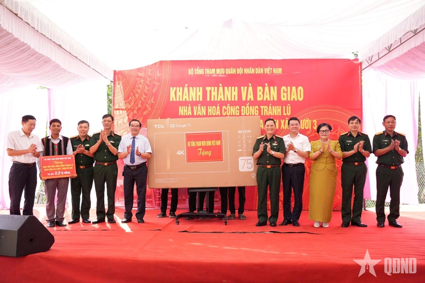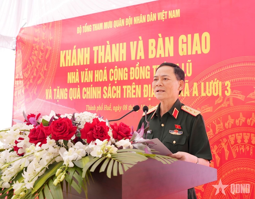 Phát biểu tại buổi lễ, Thượng tướng Phạm Trường Sơn nhấn mạnh: Nhà văn hóa cộng đồng tránh lũ thôn A Đên không chỉ là công trình phục vụ dân sinh, mà còn là biểu tượng của niềm tin, tình đoàn kết giữa Quân đội với nhân dân.