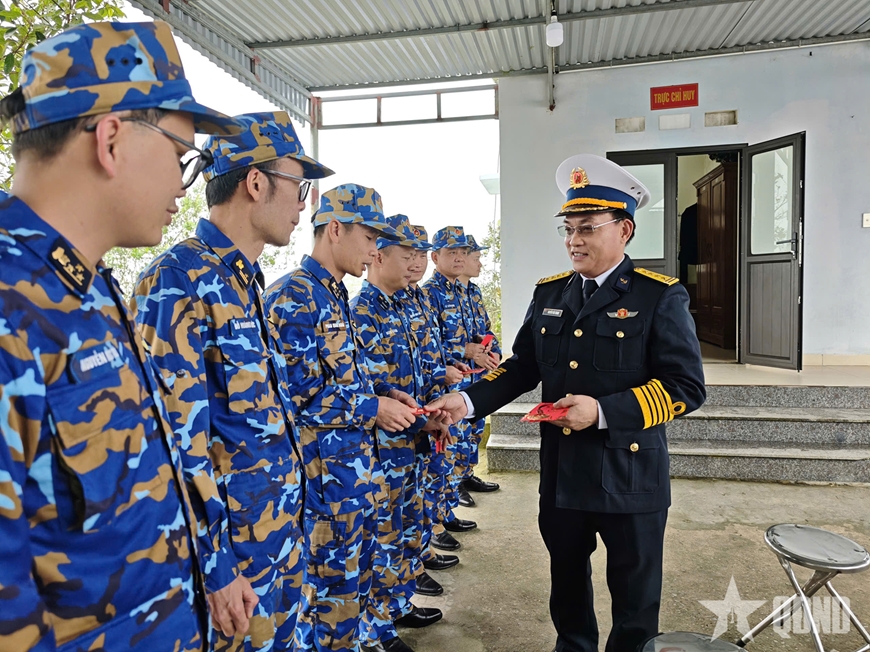 | Đại tá Nguyễn Văn Thanh, Phó tham mưu trưởng Vùng 1 Hải quân lì xì kíp trực sẵn sàng chiến đấu Trạm radar 485. |