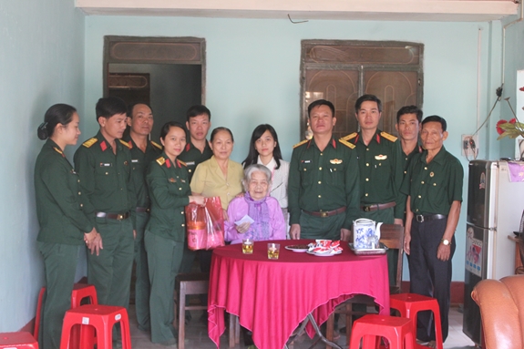 | Đại diện Công ty TNHH MTV Cà phê 15 (Quân khu 5) thăm, tặng quà Bà mẹ Việt Nam anh hùng Phạm Thị Buội, trú tại thị trấn Quảng Phú, huyện Cư M’gar (ảnh chụp trước ngày 27-4-2021). |