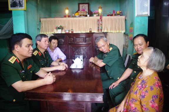 Thượng tướng Lê Chiêm, Thứ trưởng Bộ Quốc phòng và Trung tướng Đỗ Căn, Phó Chủ nhiệm Tổng cục chính trị thăm, tặng quà bà Đoàn Thị Thanh, người hưởng chính sách như thương binh (phường 2, thị xã Quảng Trị, tỉnh Quảng Trị).