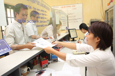 | Tiếp nhận hồ sơ và giải quyết thủ tục hành chính cho người dân tại bộ phận “một cửa” phường Ngọc Khánh (quận Ba Đình). Ảnh: Linh Tâm. |
