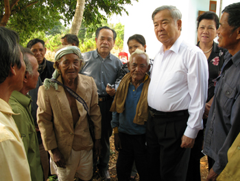 Lãnh đạo Hội Người cao tuổi thăm, tặng quà người cao tuổi diện chính sách ở xã Gào, TP Plây-cu, tỉnh Gia Lai.