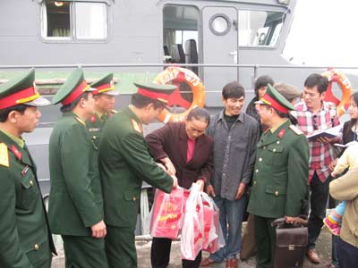 | Đại diện lãnh đạo Quân khu 3 trao quà tặng nhân dân trên tuyến đảo Đông Bắc. Ảnh: Phú Sơn |