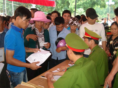 | Hướng dẫn phạm nhân và người nhà làm thủ tục đặc xá tại Trại giam Ngọc Lý (Bộ Công an). Ảnh: Tuấn Anh |