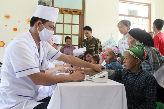 Bác sĩ Bệnh viện Quân y 110 khám bệnh cho người dân xã Vân An (Hà Quảng, Cao Bằng).