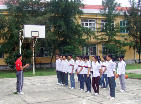 Giờ học môn thể dục của Trường THPT huyện đảo Cô Tô (Quảng Ninh). Ảnh: Trường Giang