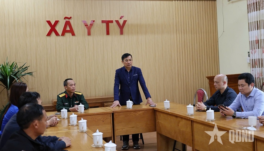 Thượng tá Nguyễn Thế Huynh trao tặng kinh phí hỗ trợ làm đường cho thôn Sim San 2, xã Y Tý, tỉnh Lào Cai.