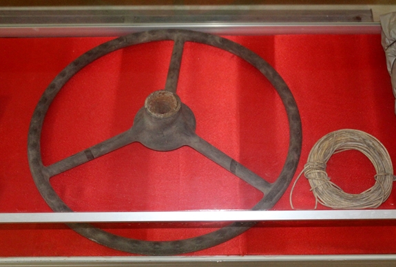 Chiếc vô lăng trưng bày tại Phòng truyền thống Lữ đoàn 414. |