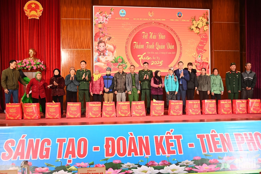 Theo đó, Bộ CHQS tỉnh Quảng Ninh, Tổng công ty Đông Bắc (Bộ Quốc phòng) tổ chức “gian hàng 0 đồng” nằm trong chương trình “Tết hải đảo - Thắm tình quân dân”; tặng 300 suất quà, mỗi suất trị giá 1 triệu đồng, gồm các nhu yếu phẩm như: Gạo, đỗ, dầu ăn, lạc, miến, mì chính, mắm, bánh, kẹo… được gửi đến các gia đình chính sách, gia đình có hoàn cảnh khó khăn trên địa bàn huyện Vân Đồn.