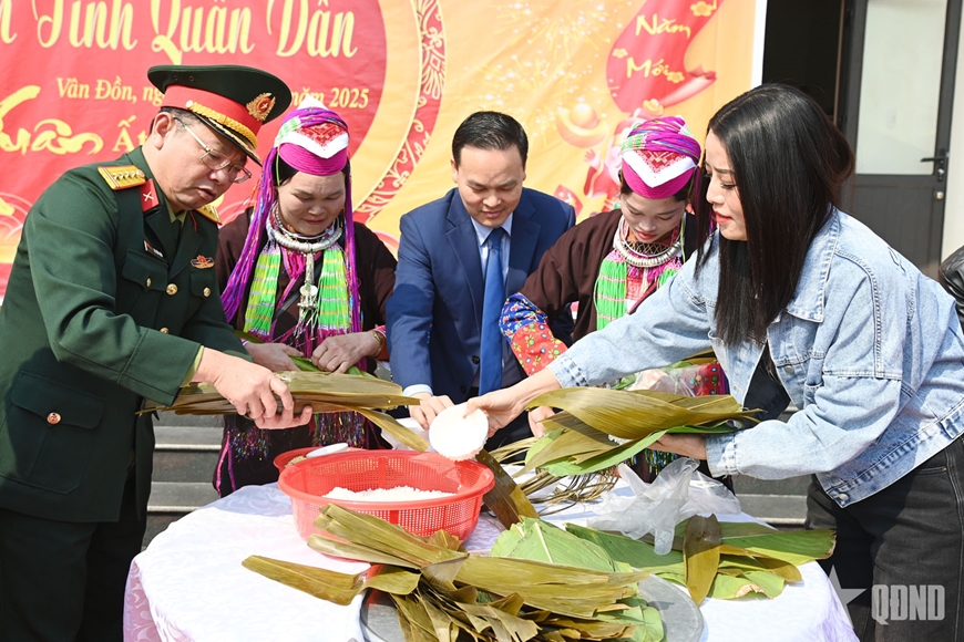 “Tết hải đảo - Thắm tình quân dân” để cùng với bà con vui xuân, đón Tết. Tại chương trình diễn ra các hoạt động giao lưu văn hóa, văn nghệ, thi gói bánh, kéo co, nhạy sạp… Có thể nói, những chiếc bánh dền, thơm mang bao tình cảm của Bộ đội Cụ Hồ đã được cán bộ, chiến sĩ và bà con nhân dân gói tặng những gia đình chính sách, gia đình có hoàn cảnh khó khăn, để góp thêm hương vị ngày Tết, làm cho không khí mùa xuân thêm ấm áp, tình quân dân thêm bền chặt.